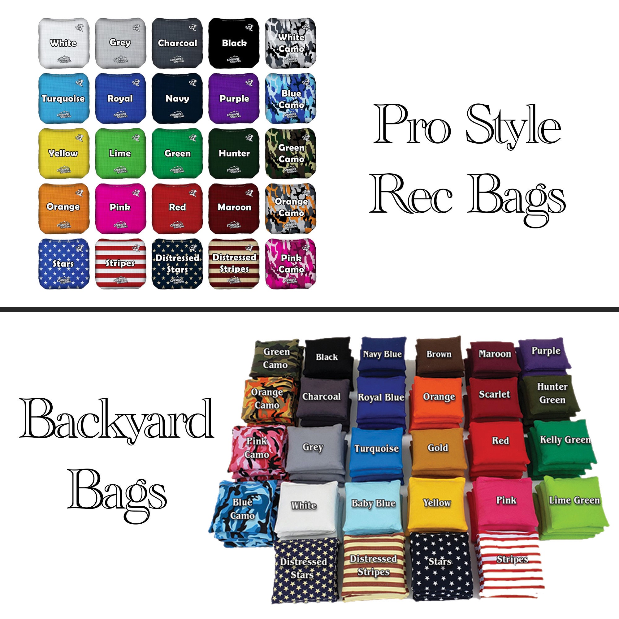 *(8) Pro Style Rec Bags or (8) Backyard Bags or No Bags! All bag options come with a drawstring tote bags (color of tote may vary).